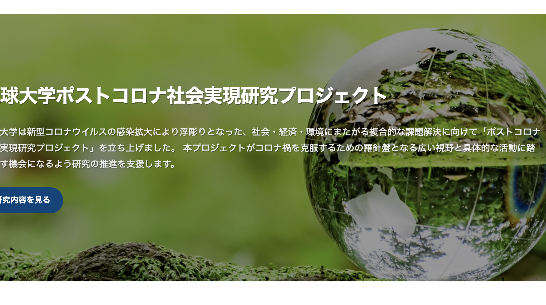2020年の年明け間もない時期から新型コロナウイルス感染症(COVID-19)の世界的規模での感染拡大が続いています。琉球大学ではコロナ禍の社会課題解決に向けた研究を支援する「ポストコロナ社会実現研究プロジェクト」を立ち上げました。